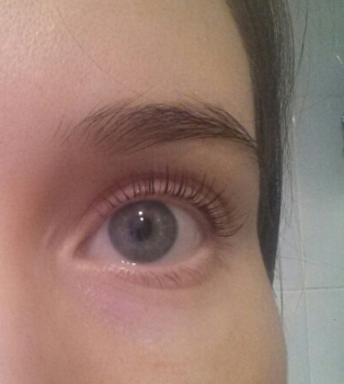 сразу после процедуры (ресницы жесткие, колючие и склеенные)