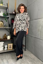 Костюм Элль стиль 2393 молоко темно-син полоска, брюки темно-синий