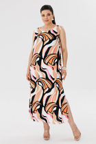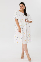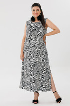 Платье Swallow 757 ярко-голубой+принт бело-бежевые камни
