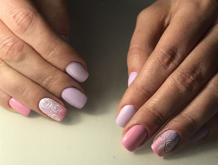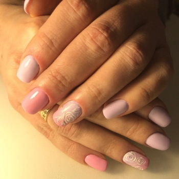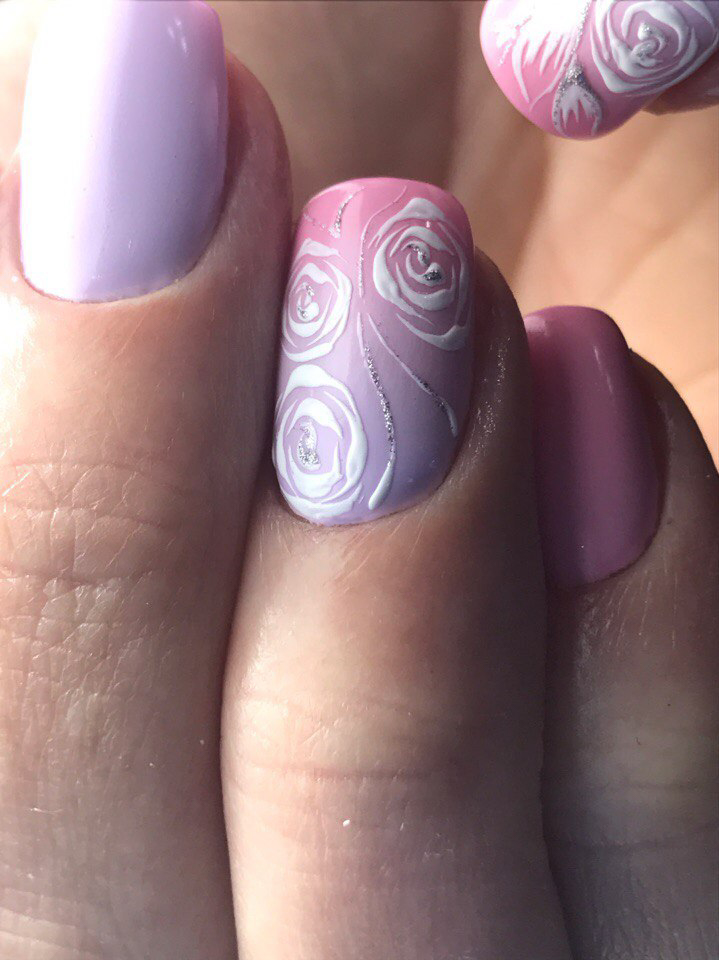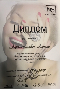 донаращивание твёрдыми и мягкими гелями, ремонт ногтей фиброином, раскатка акрилом и многое, многое другое... Вообщем, теперь я владею всеми самыми современными методами укрепления и реставрации ногтей... И это ж круто!!! Я довольна!!! Теперь ваши коготки будут ещё красивее