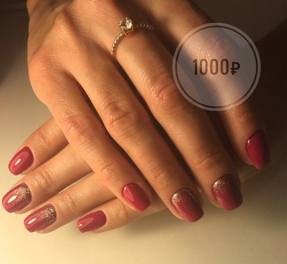 Однотонное покрытие ногтей гель-лаком (в стоимость входит маникюр и выравнивание ногтевой пластины) - 900руб