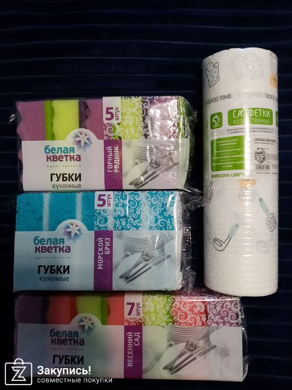 Я ненавижу мыть посуду, поэтому чтобы как то поднять себе настроение покупаю в этой закупке яркие губки для посуды. В этот раз взяла ещё и тряпку с рисунком, чтоб вообще весело стало:) Рекомендую!! Губки беру уже несколько раз, очень крепкие.