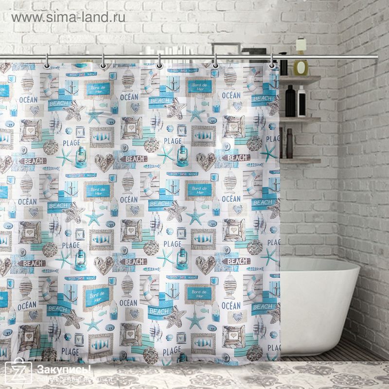 Штора для ванной комнаты Доляна «Морской элемент», 180×180 см, полиэстер