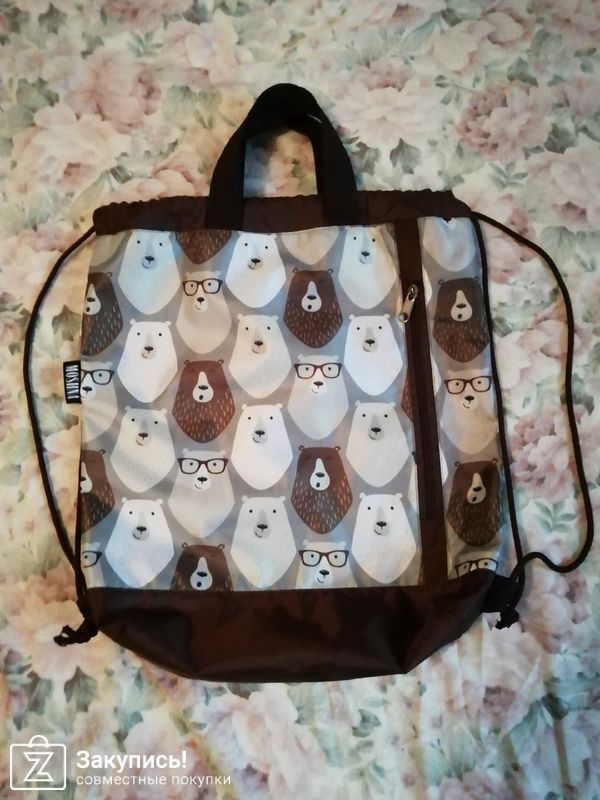 Мои медведи)). Даже мужу понравился рюкзачек. Старшая дочка сразу попыталась отобрать, но я - кремень! Вчера попали под дождь, все внутри осталось сухое. Ношу и как рюкзачек и за ручки как сумку. Благодарю.