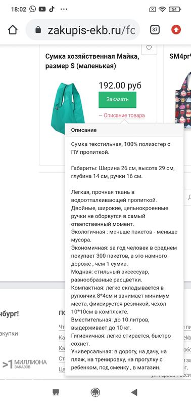 Сумка понравилась, тонкая, но достаточно прочная, размер тоже хороший, даже не ожидала, что такая будет большая, легко может заменить обычный пакет.
