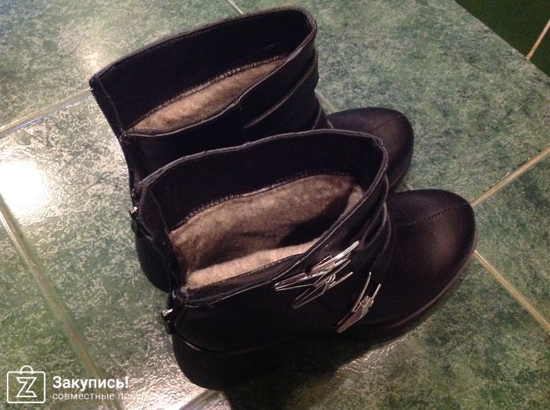 Ботинки очень понравились, выглядят стильно и удобные. Мех внутри неплохой, думаю, должны быть теплые. Заказывала 37 размер на стопу 23,5 см. Взяла с запасом, чтобы положить дополнительно стельку еще. Каблук удобный, подошва вроде не скользкая.