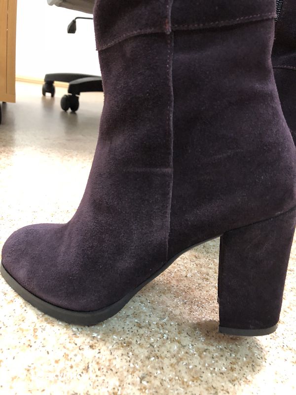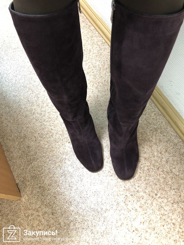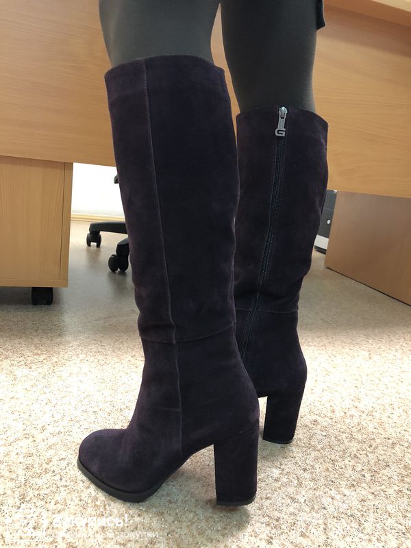 Инд. Пошив: выбрала цвет, они называют бордовым, но он ближе к темно-фиолетовому, сделали уже голень, евро-зиму и полностью замшевый каблук как у их ботфортов и сапожек-гармошек.