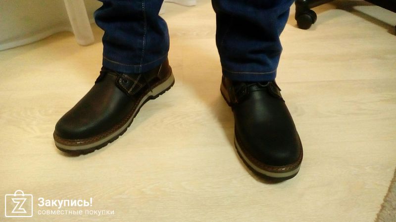 Кожа жестковата как по мне, насчет натуральности не могу ничего сказать, не разбираюсь в этом. Но за такую цену ботинки отличные, в магазине такие не купить! Организатору очередное спасибо!