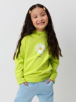 Худи с капюшоном для девочки из петельчатого футера. Принт выполнен из высококачественных текстильных красителей.