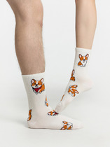 рис.1909 Мужской классический высокий носок с узким бортом и рисунком в виде Джек Расселов.— Описание у На сайте поставщика