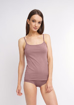 Майка женская из эластичного хлопкового полотна. Узкая бретель. В боковом шве фирменный жаккардовый логотип.— Описание у На сайте поставщика