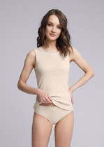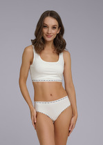 Майка женская из эластичного хлопкового полотна. Широкая бретель. В боковом шве фирменный жаккардовый логотип.— Описание у На сайте поставщика
