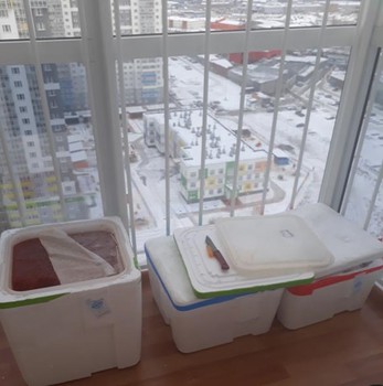 До раздачи дома храню несколько часов, т.к. получаю и сразу готовлю к сдаче в ЦР. Часть в холодильнике, часть на лоджии.