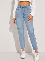 Джинсы Fly Mom с рваной пуговицей