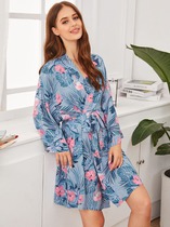 2шт контрастное кружевное атласное ночное платье и халат с поясом