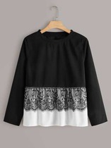 Блузка кружевная вставка Dip Hem Tee, большие размеры