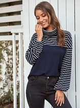 Футболка с высокой горловиной и контрастной полоской