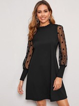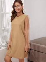 Платье с контрастным рукавом и сеткой