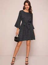 Платье с поясом и воланами с принтом Dalmatian
