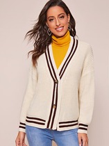 Полосатый вязаный кардиган в полоску с двумя пуговицами
