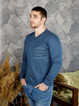 Джемпер мужской ; Страна производства: Россия Состав: 50% шерсть, 50% акрил Артикул: m-179 Размер: 48.50.52.54.56 Цвет: джинс
