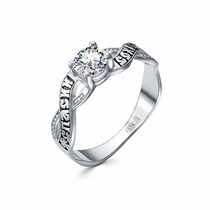 Кольцо (Господи Спаси и Сохрани мя) с фианитом родированное серебро 925*