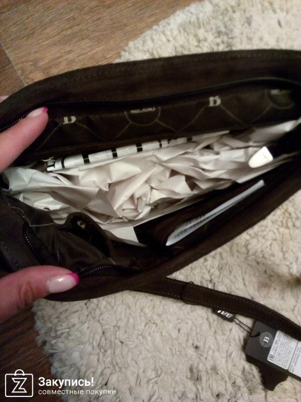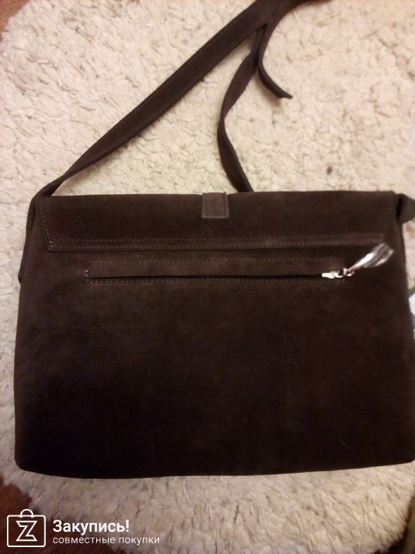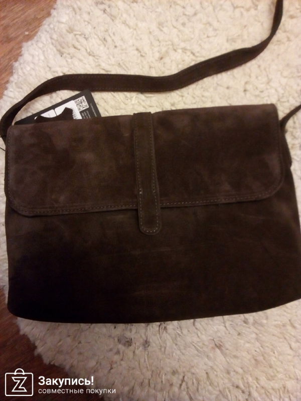 Забрала сегодня свою сумку. Замша, отличная добротная замша. Пахнет кожей, все строчки ровные, ремешок регулируется. Не красит(многие сумки этим грешат).