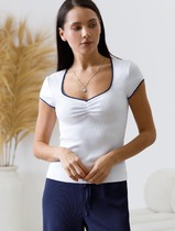 Футболка с фигурным вырезом каре из эластичного трикотажа кашкорсе