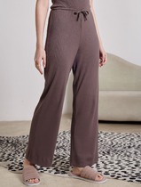 Прямые брюки с поясом на резинке из фактурного трикотажа в рубчик