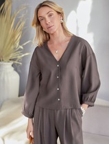 Укороченная блузка с V вырезом из плотного лиоцелла