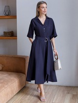 Платье-рубашка А-силуэта с поясом и карманами из плотного лиоцелла
