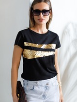Нарядная футболка с блестящим принтом пайетками