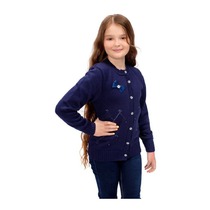 Вид: кардиган; Пол: девочка; Состав: шерсть, акрил; Цвет: синий; Вид застежки: брошь; Тип рукава: длинный; Покрой: прямой