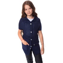 Вид: кардиган; Пол: девочка; Состав: шерсть, акрил; Цвет: синий; Вид застежки: брошь; Тип рукава: длинный; Покрой: прямой