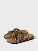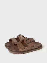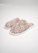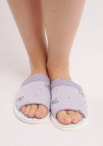 Домашние тапочки с открытым носом из хлопкового трикотажного полотна, сверху нашивка. Толстая подошва.