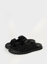 Домашние тапочки с открытым носом из хлопкового трикотажного полотна, сверху нашивка. Толстая подошва.— Описание у На сайте поставщика