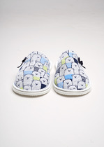 Домашние тапочки с закрытым носом из хлопкового трикотажного полотна, сверху нашивка бант. Толстая подошва.— Описание у На сайте поставщика