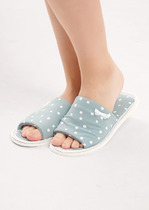 Лёгкие тапки для дома и отдыха с открытым носом из хлопкового трикотажного полотна, сверху нашивка бант. Толстая подошва.— Описание у На сайте поставщика
