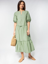 Vilatte Платье-баллон на кулиске внизу из плотного поплина D22.200 светло-оливко