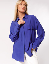 14.04 Vilatte Блузка в стиле сафари из плотного лиоцелла D29.239 дымчатый синий
