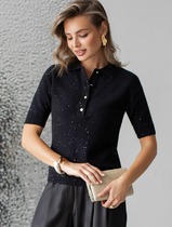 Vilatte Джемпер поло с застежкой на пуговицы из хлопковой пряжи с пайетками D39.