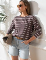 09.04 Vilatte Свободная футболка в полоску из премиального хлопка с эластаном D