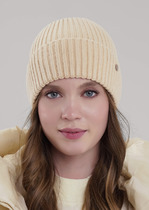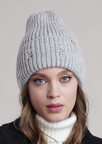 Женская двойная шапка, декорирована нашивкой логотип. Подойдёт для холодной осени- тёплой зимы.— Описание у На сайте поставщика