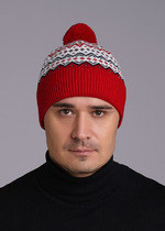 Шапка жаккардового переплетения с отворотом и ниточным помпоном, на флисовом подкладе.— Описание у На сайте поставщика