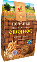 Печенье овсяное цельнозерновое с овсяными отрубями, льном, черникой на фруктозе