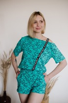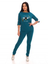 Домашний костюм К 91 (T) (Изумрудный с принтом)