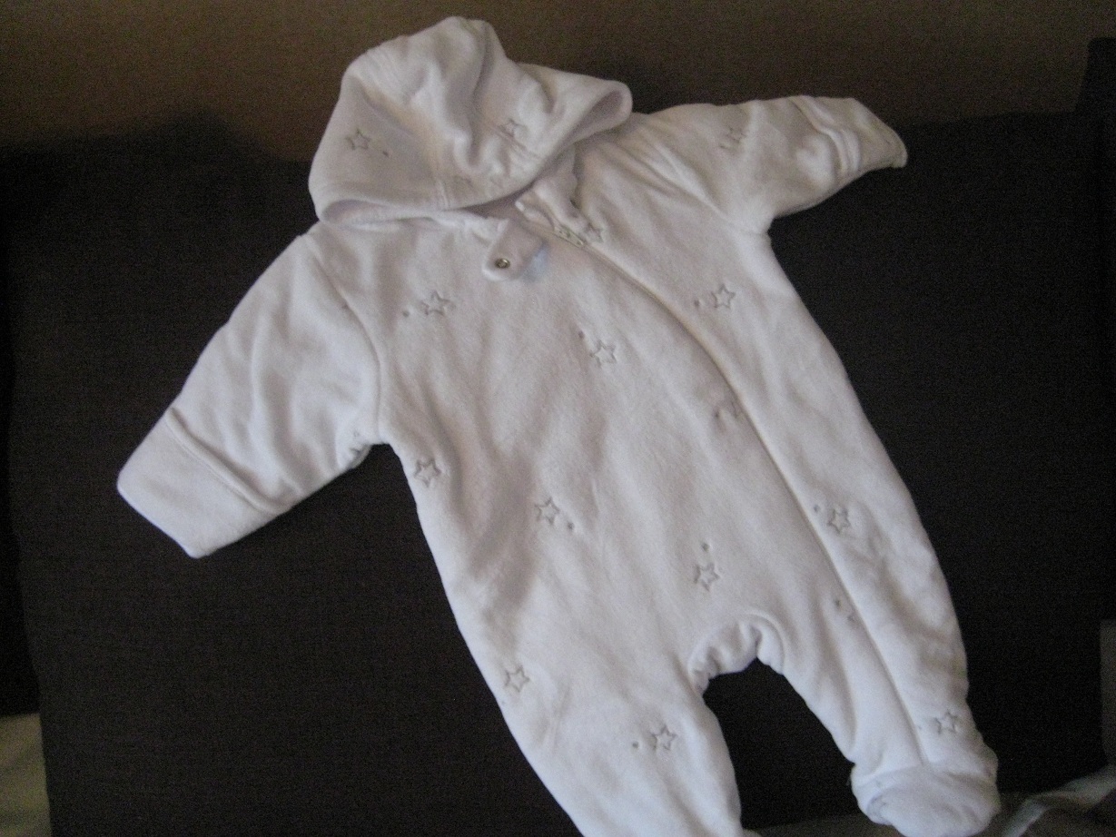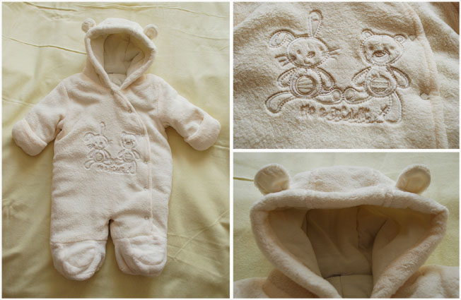 комбезик отличная вещь! у меня у сынишки был подобный, тоже беленький, такой ангелочик мягенький в коляске лежал