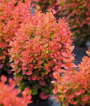 Компактный кустарник. Цветки карминно-розового цвета весной и красного цвета летом