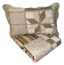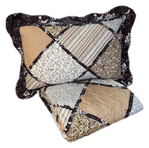 Покрывало пэчворк с наволочками ПОЛОСКИ СВЕТЛО - КОРИЧНЕВЫЙ
