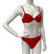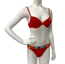 Красный купальник с радужной отделкой